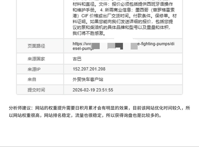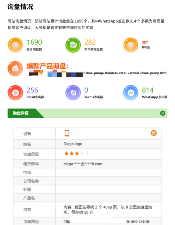 优质的谷歌优化,最终落地于流量沉淀与询盘转化。如今,该泵业客户的网站已成为海外获客核心阵地,流量表现持续亮眼:全年IP流量稳定在13w以上,累计IP访问量突破57w+,庞大的精准流量为询盘转化注入强劲动力。截至目前,网站累计询盘量已达1690个,且多数为意向明确、有真实采购需求的高质量海外买家,真正实现了“流量变订单”的核心目标,彰显了谷歌优化的实效价值,也印证了双方合作的默契与共赢。